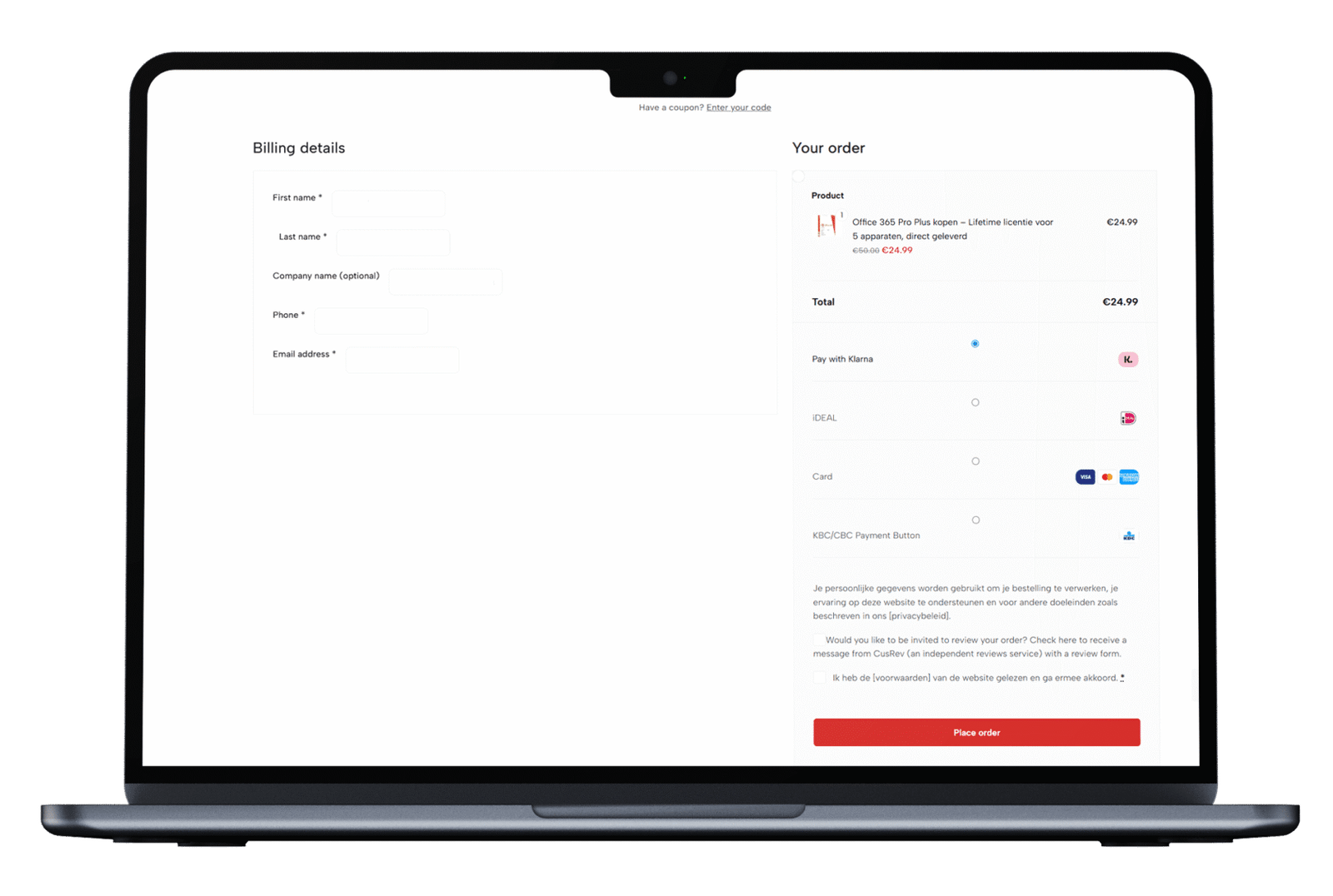 Llena tus datos, elige tu método de pago y haz clic en comprar